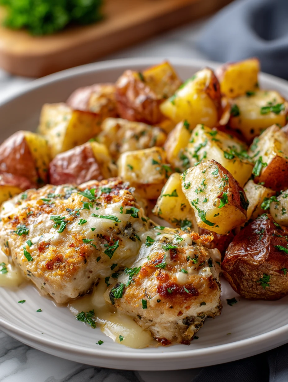 For me, this dish is all about contrast and balance. You get juicy chicken with a crunchy, cheesy topping, creamy-centered potatoes with crisp edges, and a garlicky butter sauce that keeps everything moist and flavorful. It’s rich but not heavy, and it works just as well for a simple family dinner as it does for guests.