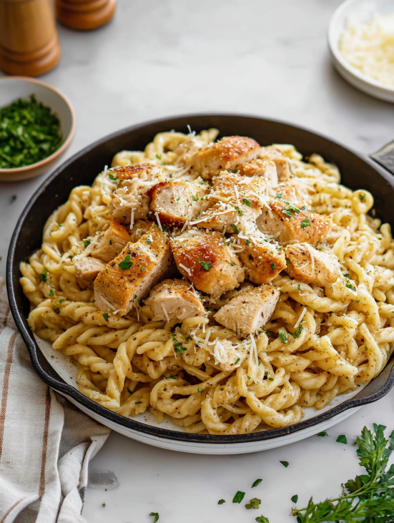 Creamy, rich, and packed with savory flavor, this Garlic Parmesan Chicken Pasta is the ultimate comfort meal made easy. Tender bites of seared chicken blend into a luscious garlic-Parmesan cream sauce, coating every twist of pasta with indulgent flavor. This recipe is perfect for busy weeknights, cozy dinners, or when you just need something *really good*. Packed with broad appeal, it works great for those searching easy dinner ideas, quick family meals, or creamy pasta cravings. It’s one of those dishes you’ll find yourself making again and again!