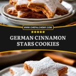 German Cinnamon Stars Cookies, often inspired by classic zimtsterne, stand out because they are rich with nutty flavor and scented generously with cinnamon. Instead of tasting like an ordinary sugar cookie, they have a softer, slightly chewy bite that feels more rustic and festive. The icing bakes into a delicate cap on top, giving each cookie its signature look and a sweet finish that balances the spice beautifully.