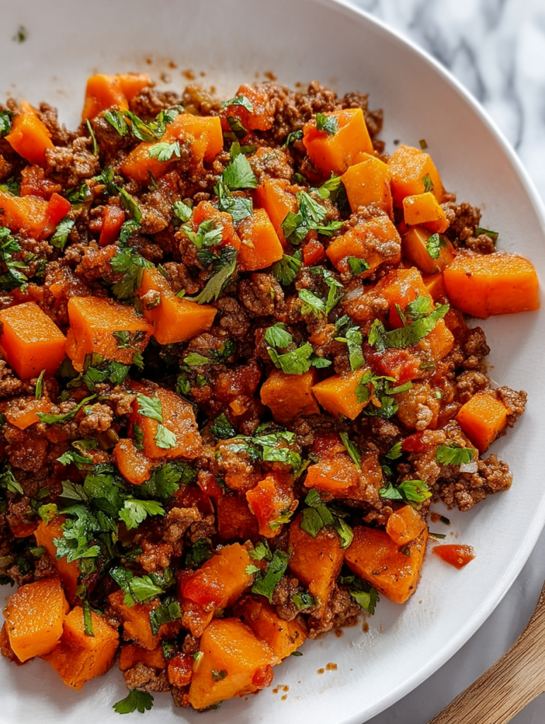This Ground Beef and Sweet Potato Skillet is a comforting, nutrient-packed one-pan meal that’s perfect for a quick weeknight dinner or healthy meal prep. Made with naturally sweet cubes of sweet potatoes, seasoned ground beef, and a blend of warm spices, it’s savory, filling, and incredibly easy to throw together. Whether you’re after a quick dinner, high-protein lunch, or simply food ideas that check all the boxes—this is it! Ideal for anyone seeking easy dinner recipes, healthy snack options, or quick meal prep ideas.