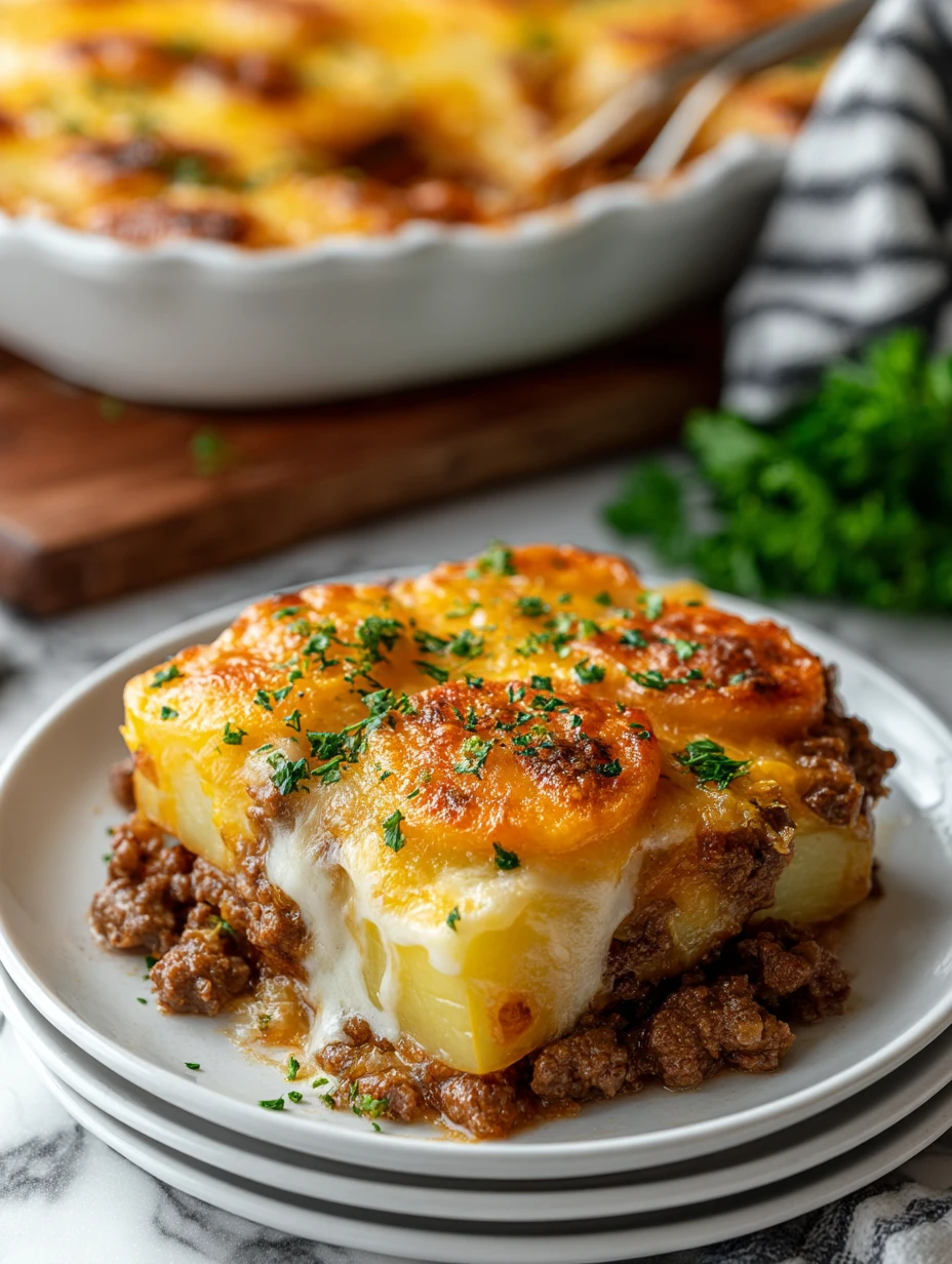 Keywords: ground beef, potato casserole, easy dinner, comfort food
