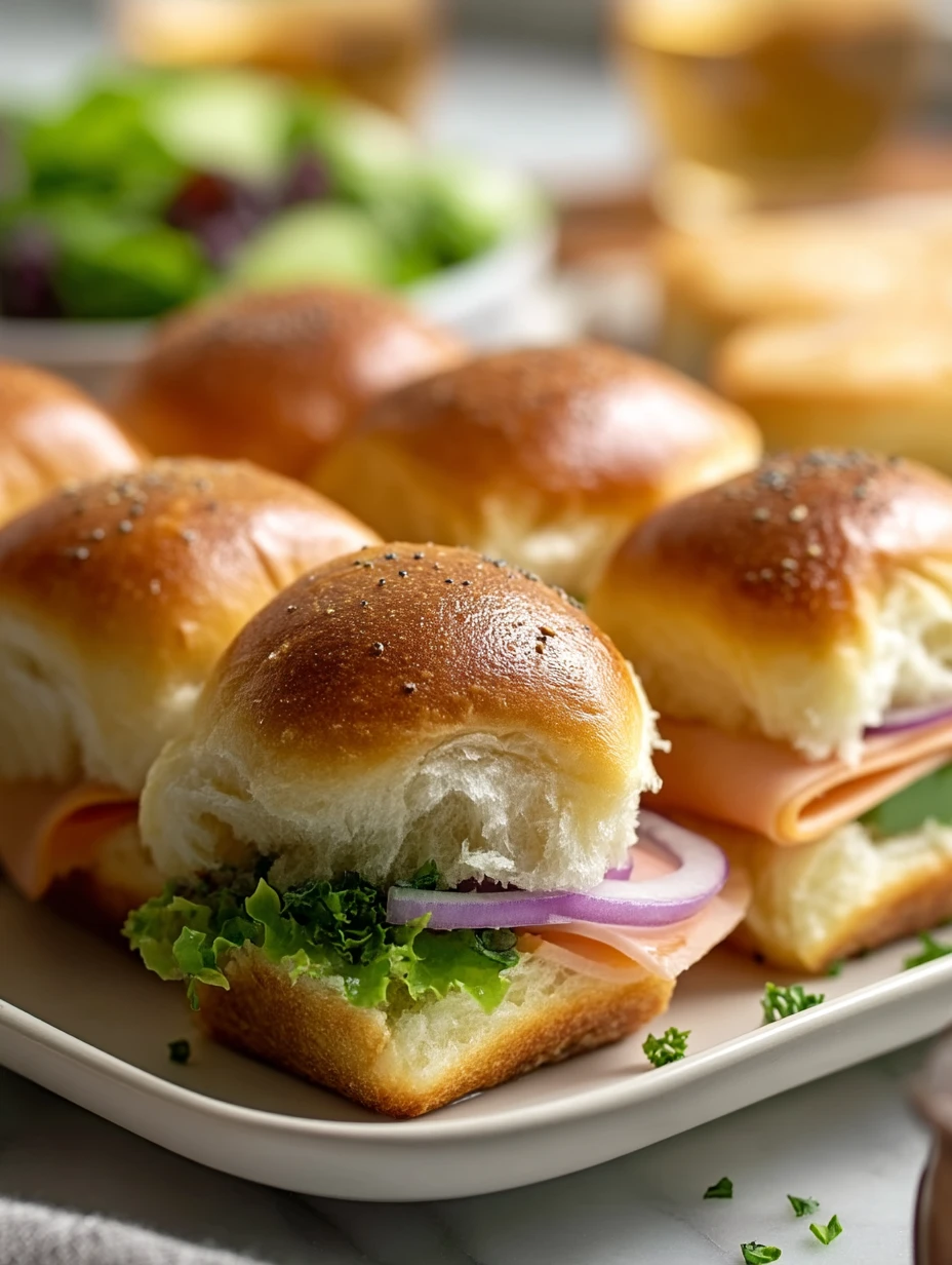 These soft, slightly sweet rolls are the heart of the sliders. They toast lightly in the oven while staying fluffy inside, and their sweetness balances the salty ham and cheese.