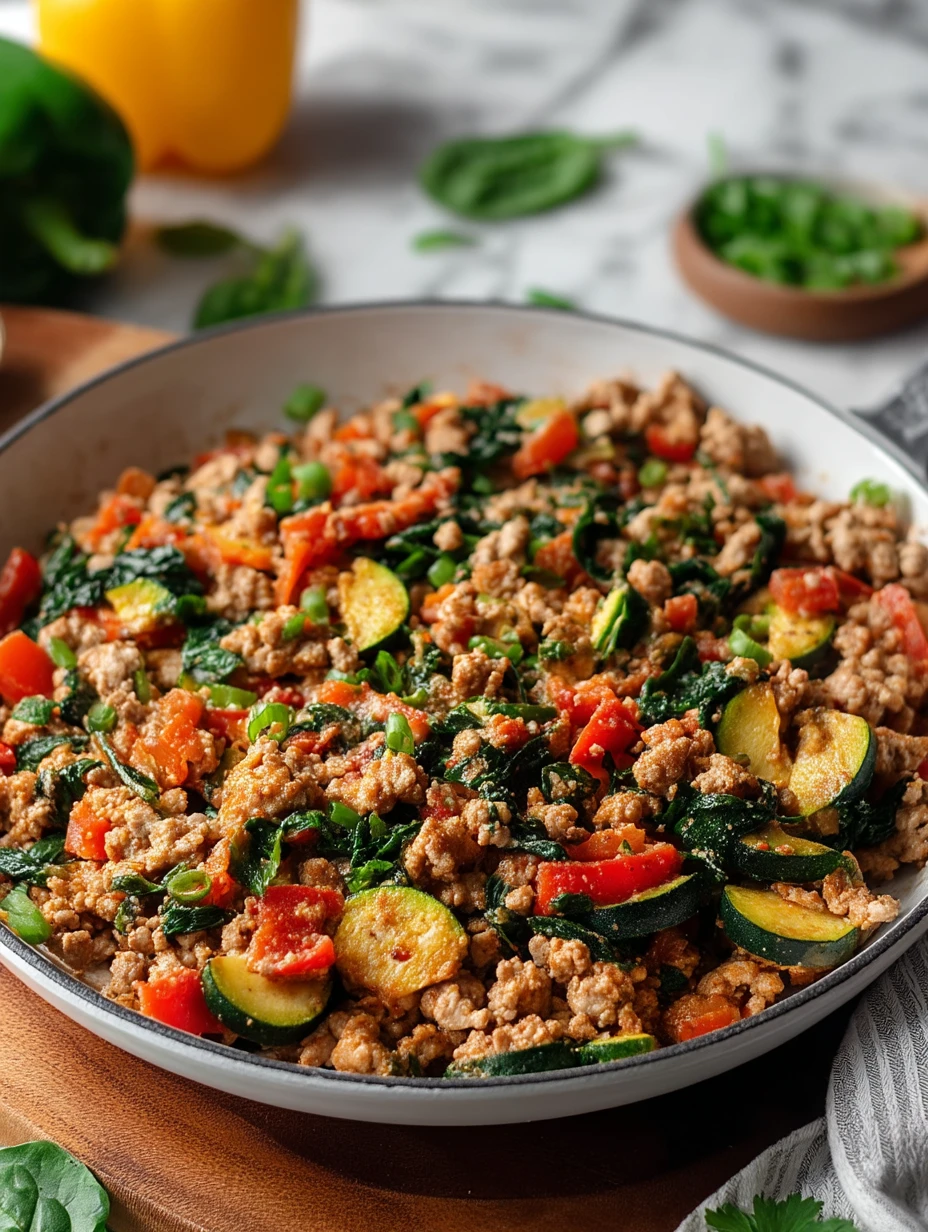 Get ready for a colorful one-pan dinner that actually makes you excited to cook after a long day. This Healthy Ground Turkey Skillet With Veggies is loaded with lean ground turkey, zucchini, bell peppers, corn, tomatoes, and spinach, all simmered in a flavorful herb-and-garlic tomato sauce with a touch of Parmesan. It’s a quick breakfast-for-dinner option, an easy dinner on busy nights, and even works as a healthy snack-style meal prep bowl. If you’re hunting for weeknight dinner ideas, breakfast ideas for savory mornings, or just reliable easy recipe food ideas that feel good and taste even better, this skillet is about to become a regular in your rotation.