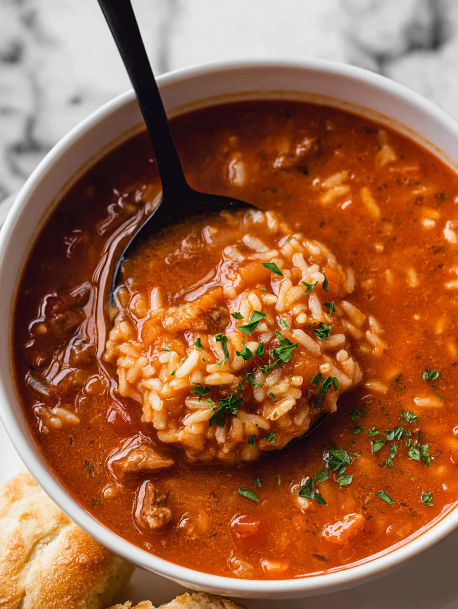 Warm up with this richly satisfying Hearty Tomato Rice Soup, where tender beef chunks, savory herbs, and a robust tomato broth meet perfectly cooked rice. This easy recipe brings comforting, homemade flavor to your table with simple pantry staples. Ideal for quick dinner ideas, cold-weather meals, or a cozy night in, it’s a hearty, flavorful soup the whole family will love. Whether you’re searching for a healthy snack, a quick lunch fix, or an easy dinner recipe to prep ahead, this tomato rice soup hits the mark every time.
