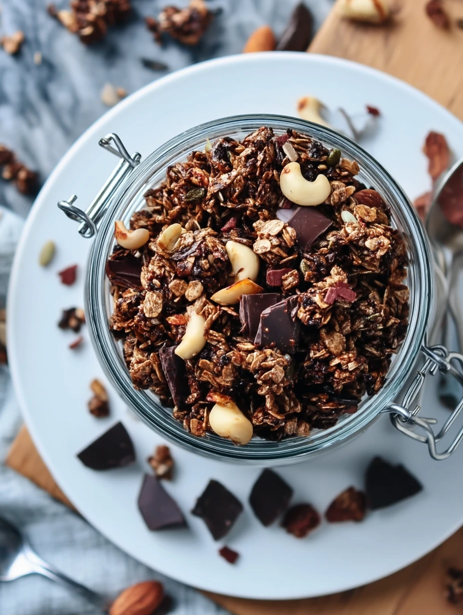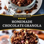 Craving a crunchy, chocolatey snack that doubles as a wholesome breakfast topper? This Homemade Chocolate Granola is your answer. Packed with rolled oats, cocoa, maple syrup, roasted peanuts, and dark chocolate chunks, it’s baked to crisp perfection and finished with a sweet-salty crunch. Enjoy it over yogurt, smoothie bowls, or straight from the jar. Perfect for meal prep, this easy recipe fits into quick breakfast routines, healthy snack ideas, or dessert-worthy food ideas. Simple, fast, and deeply satisfying—your mornings just got an upgrade.