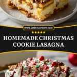 Keywords: christmas dessert, cookie lasagna, homemade christmas cookie lasagna, no bake dessert, easy dessert recipe, holiday dessert, dessert lasagna