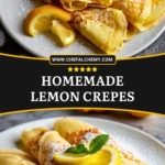 Wake up your morning with the bright, citrusy joy of Homemade Lemon Crepes! These tender, buttery crepes are kissed with fresh lemon zest and juice, making them a sunny breakfast idea, a zesty dessert, or a fresh twist on brunch favorites. Perfect for weekend brunches, tea parties, or when you just want a quick breakfast that feels special. Whether filled with sweet ricotta, lemon curd, or topped with powdered sugar, these crepes strike the perfect balance between sweet and tart. Try them for your next easy recipe craving, and keep it in your go-to collection of food ideas, breakfast ideas, and healthy snack options.