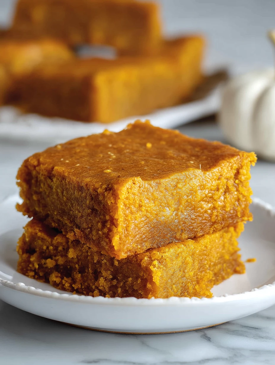 The texture is dense yet tender, with pumpkin puree doing most of the heavy lifting to keep the bars rich and satisfying. Whether you enjoy them slightly warm with a cup of coffee or chilled straight from the fridge, they deliver classic pumpkin flavor in a smarter, lighter way.