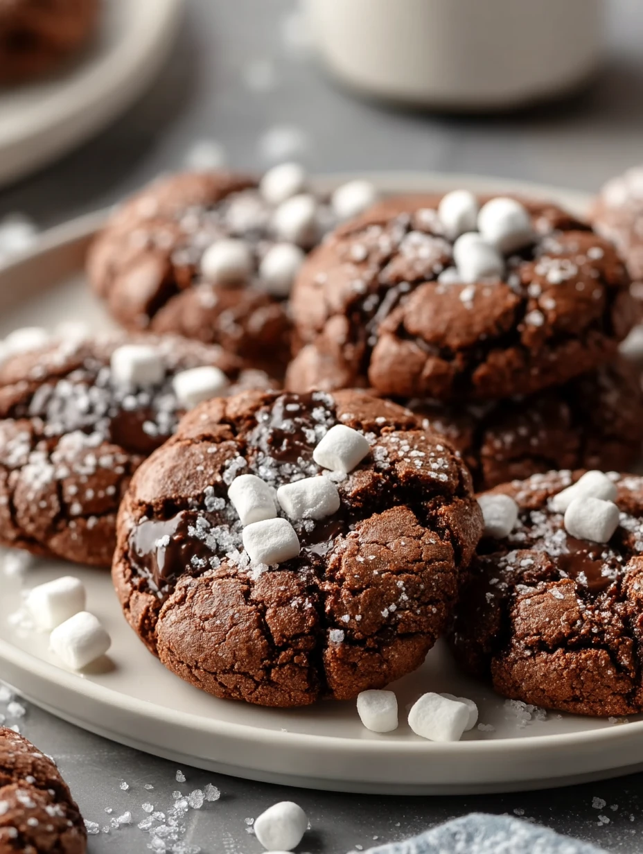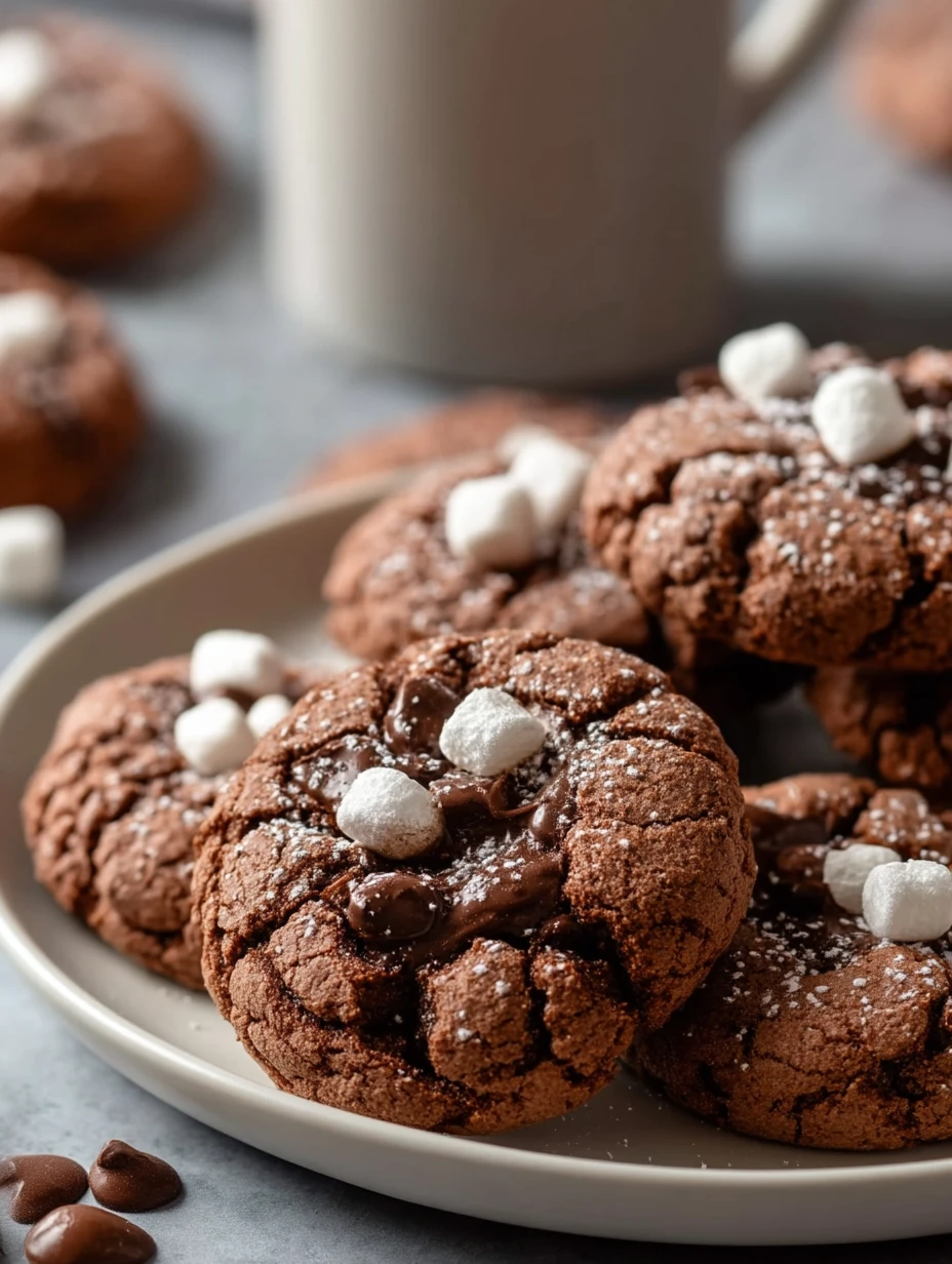 Keywords: hot chocolate cookies, chocolate marshmallow cookies, easy cookie recipe, holiday cookies, soft chocolate cookies, dessert ideas, homemade cookies