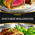 Golden, crisp puff pastry encasing a tender, juicy beef tenderloin – there’s nothing quite as show-stopping as a classic Juicy Beef Wellington. Whether you’re looking to impress guests at a holiday feast or elevate a date night dinner, this elegant dish balances bold flavors and refined textures. The savory mushroom duxelles, rich prosciutto, and perfectly cooked beef wrapped in buttery pastry create a symphony of luxurious flavor in every bite.