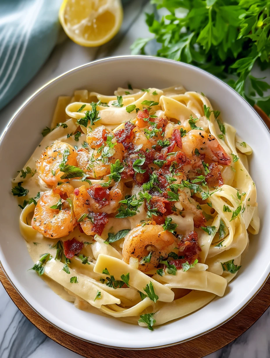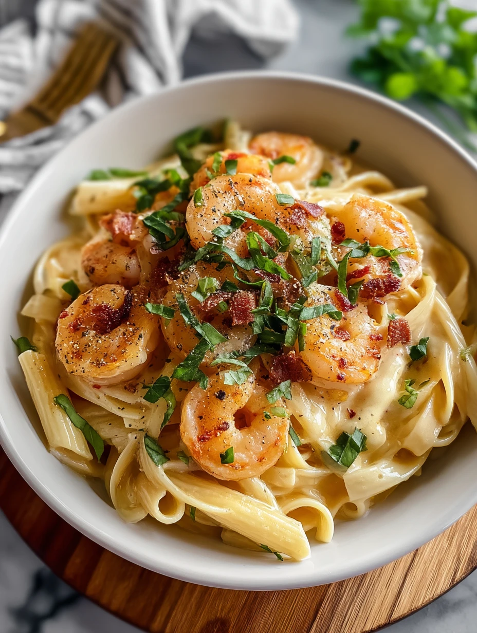 Keywords: shrimp pasta, marry me shrimp pasta, creamy shrimp pasta, easy dinner, quick dinner, pasta dinner ideas, garlic parmesan shrimp pasta, bacon shrimp pasta