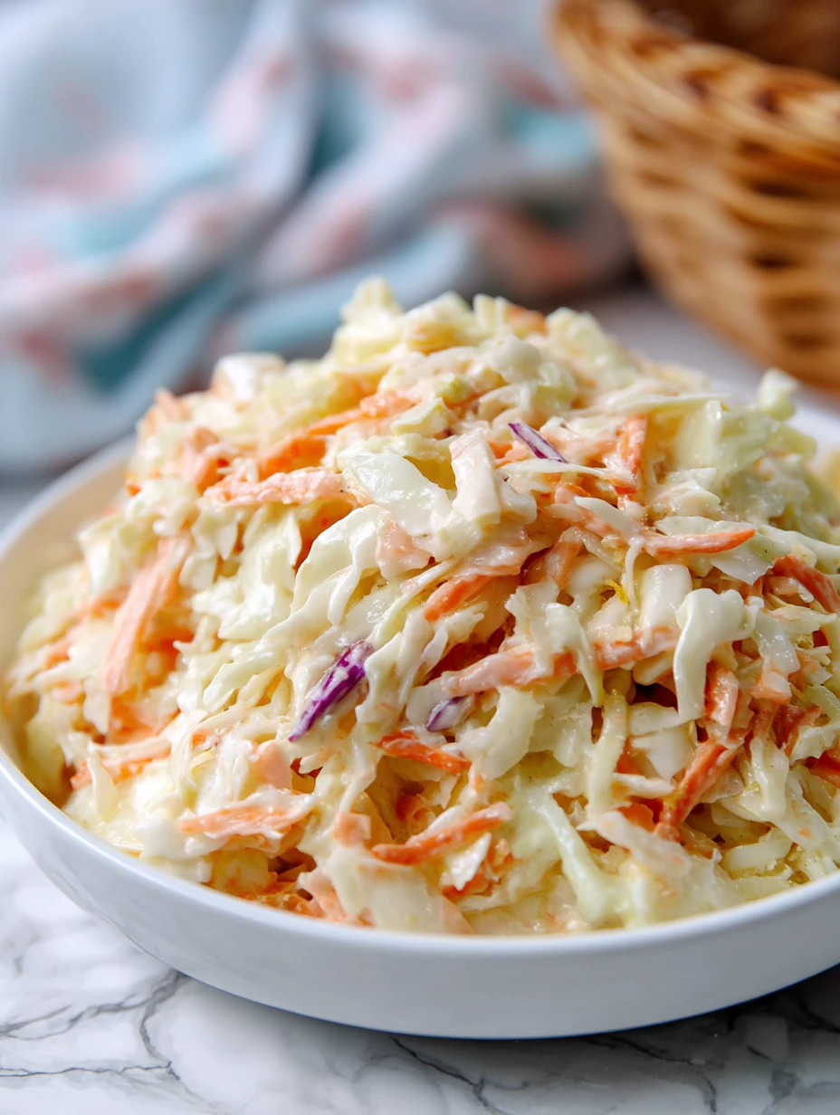 Perfect for potlucks, cookouts, or as a refreshing contrast to spicy mains, this copycat coleslaw is all about texture and flavor. It’s creamy without being heavy, tangy without being sharp, and sweet without being overpowering. Trust me, this one’s going to be on repeat all summer long.