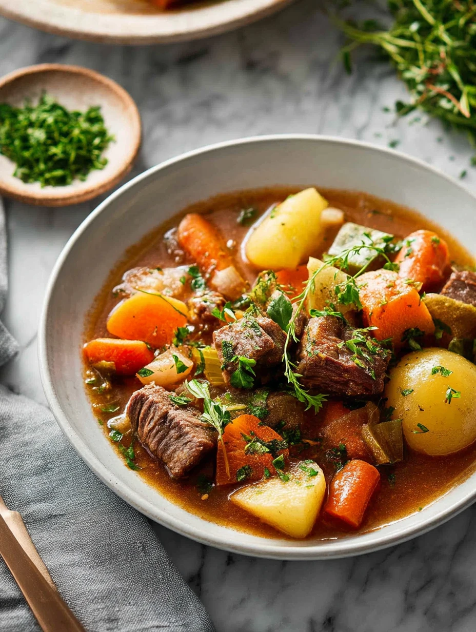 For me, a great lamb stew is all about balance: rich meat, earthy vegetables, and a broth that feels indulgent without being heavy. I use a mix of stock, a splash of wine, and a touch of tomato paste to create depth, then let time and gentle heat do most of the work.