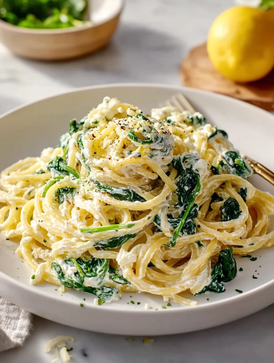 Keywords: lemon ricotta pasta, easy dinner, vegetarian pasta, spinach pasta, creamy pasta