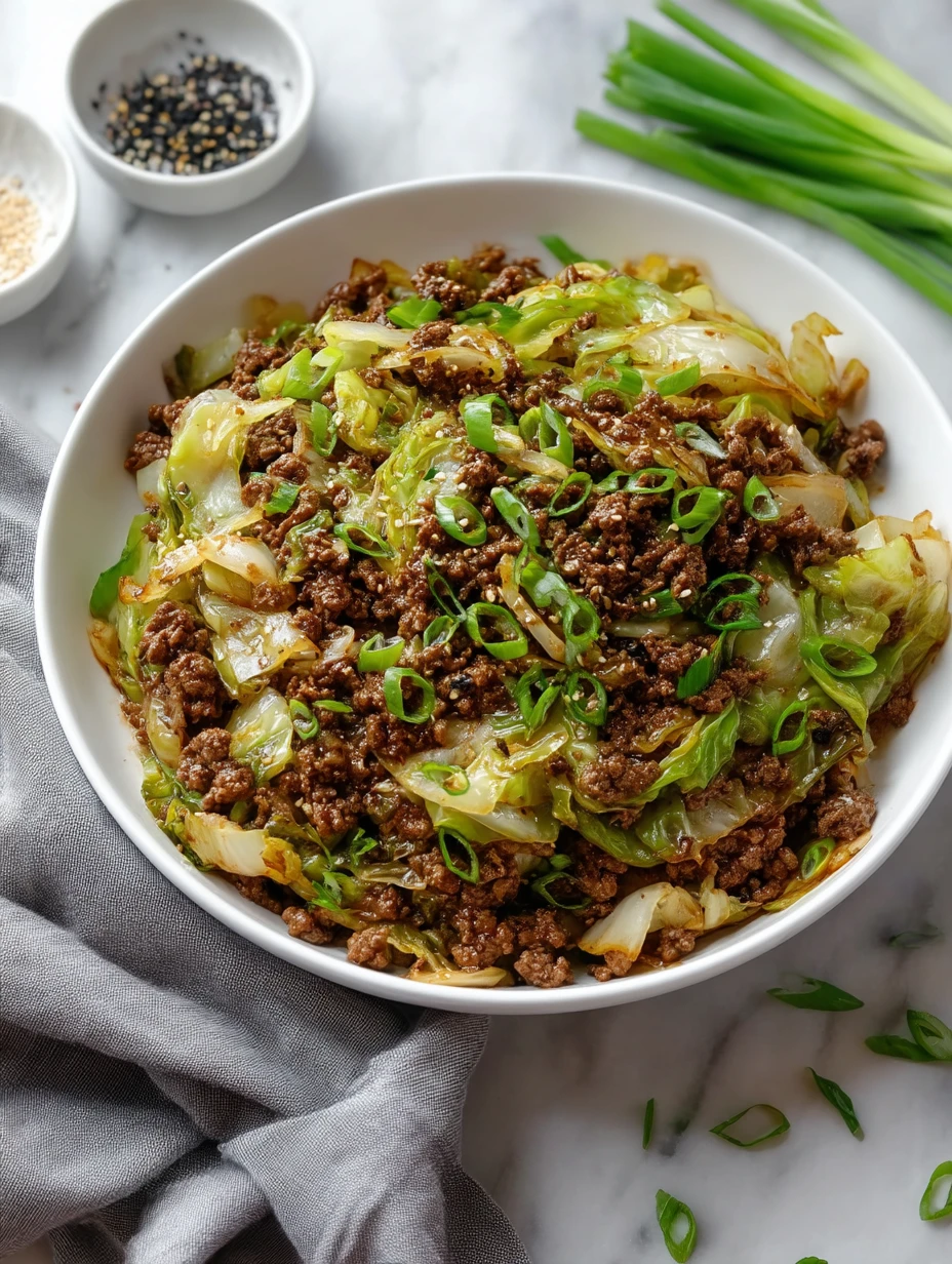 Using ground beef gives us all the savory richness without any slicing or marinating. Cabbage steps in for the usual rice or noodles, soaking up the sweet-salty sauce while keeping the whole dish low-carb and veggie-forward. A few pantry staples—soy sauce, ginger, garlic, and a brown sugar substitute—do the heavy lifting for flavor so you can get dinner on the table in about 25 minutes.