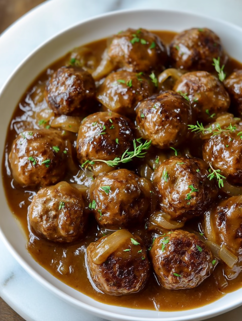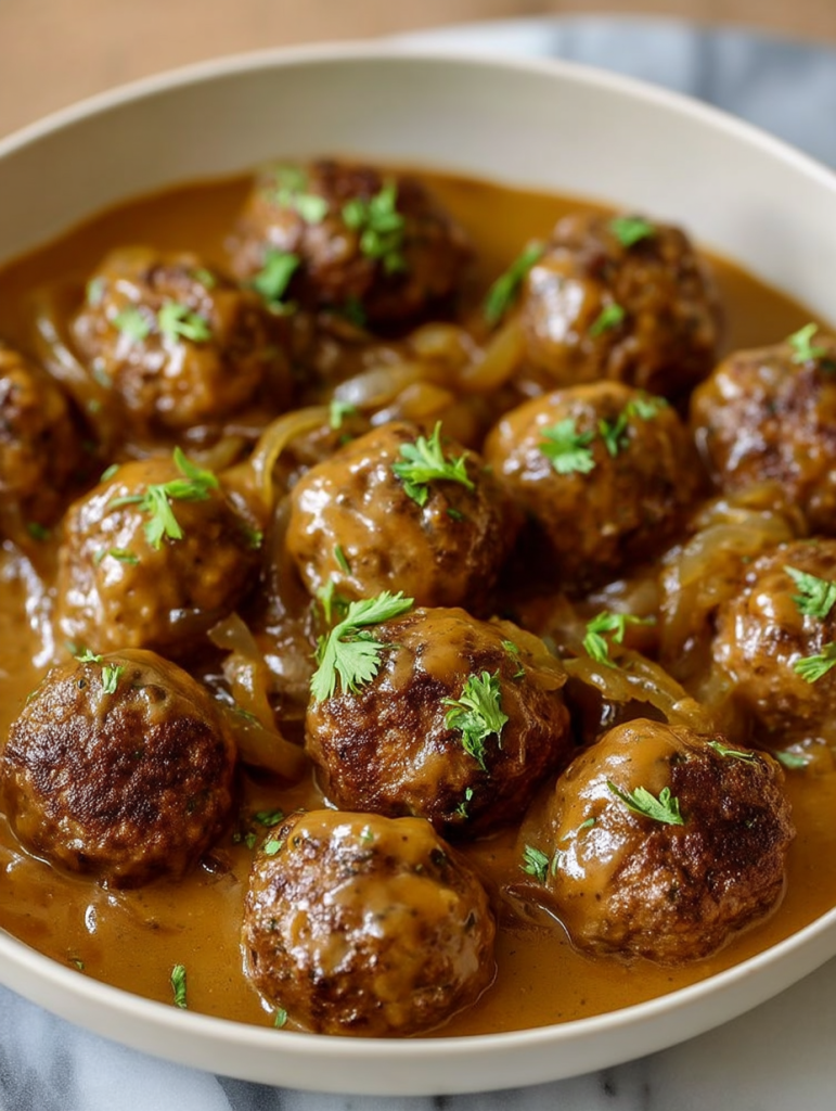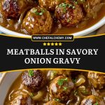 Sink your fork into these rich and comforting *Meatballs in Savory Onion Gravy*—a hearty, home-cooked classic perfect for chilly nights or cozy family dinners. Juicy beef meatballs are seared golden and smothered in a slow-simmered onion gravy that’s packed with flavor. This dish is the ultimate easy dinner idea when you’re craving something warm and satisfying. Serve it over mashed potatoes, noodles, or rice for a full meal that delivers on flavor and nostalgia. If you’re searching for food ideas that are both quick and comforting, this recipe checks all the boxes: easy recipe, weeknight dinner, cozy meal, comfort food, and perfect for leftovers too!