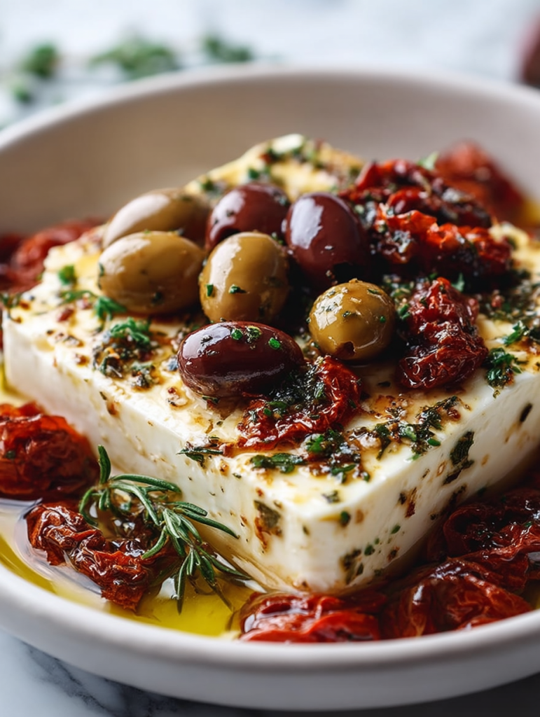 Mediterranean Baked Feta with Olives & Sun-Dried Tomatoes