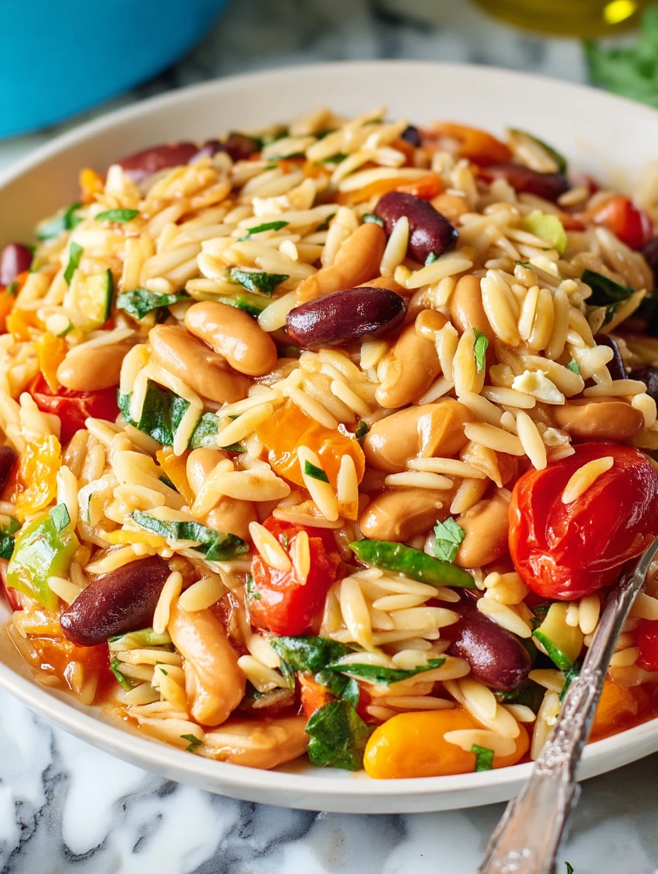 Get ready to fall in love with this colorful and hearty Mediterranean Orzo and Beans. It’s the perfect one-pot wonder for anyone looking for a healthy, satisfying, and fast weeknight meal. Featuring creamy beans, vibrant veggies, tender orzo pasta, and a savory tomato broth, this easy dinner idea packs a punch of flavor and nutrition. Great for meatless Monday, quick lunch prep, or cozy dinner ideas. Whether you’re hunting for a vegetarian recipe, food ideas with pantry staples, or a warm and healthy snack, this dish covers it all.