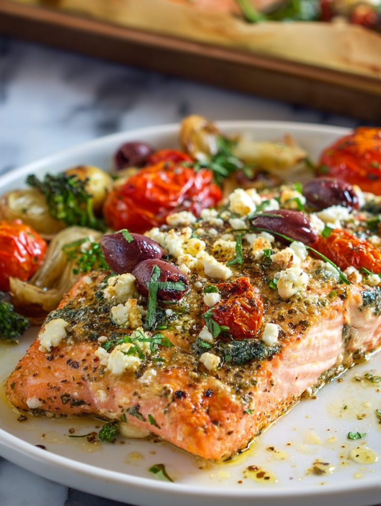 This Mediterranean Salmon Bake is your answer to a flavorful, healthy, and quick dinner idea. Featuring juicy salmon fillets topped with pesto, spinach, sun-dried tomatoes, and creamy feta, it’s a wholesome one-pan meal packed with bold Mediterranean flair. Ideal for a weeknight meal, easy dinner party, or healthy lunch prep, this recipe is fast, easy to clean up, and totally satisfying. Whether you’re on the hunt for new food ideas or healthy meal plans, this baked salmon is a must-try!