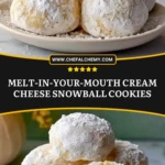 Melt-In-Your-Mouth Cream Cheese Snowball Cookies are buttery, tender little cookie bites that practically dissolve the moment you take a bite. Cream cheese in the dough gives them a rich tang and a meltaway texture, while finely chopped nuts add a gentle crunch under all that snowy powdered sugar. They’re perfect for holiday cookie trays, gifting, or whenever you’re craving a sweet treat with a cup of coffee. These cookies aren’t exactly a quick breakfast or easy dinner, but they’re a fun healthy snack–style indulgence to serve alongside brunch breakfast ideas, to follow cozy dinner ideas, or to add to your favorite easy recipe collection when you need new food ideas for celebrations and parties.