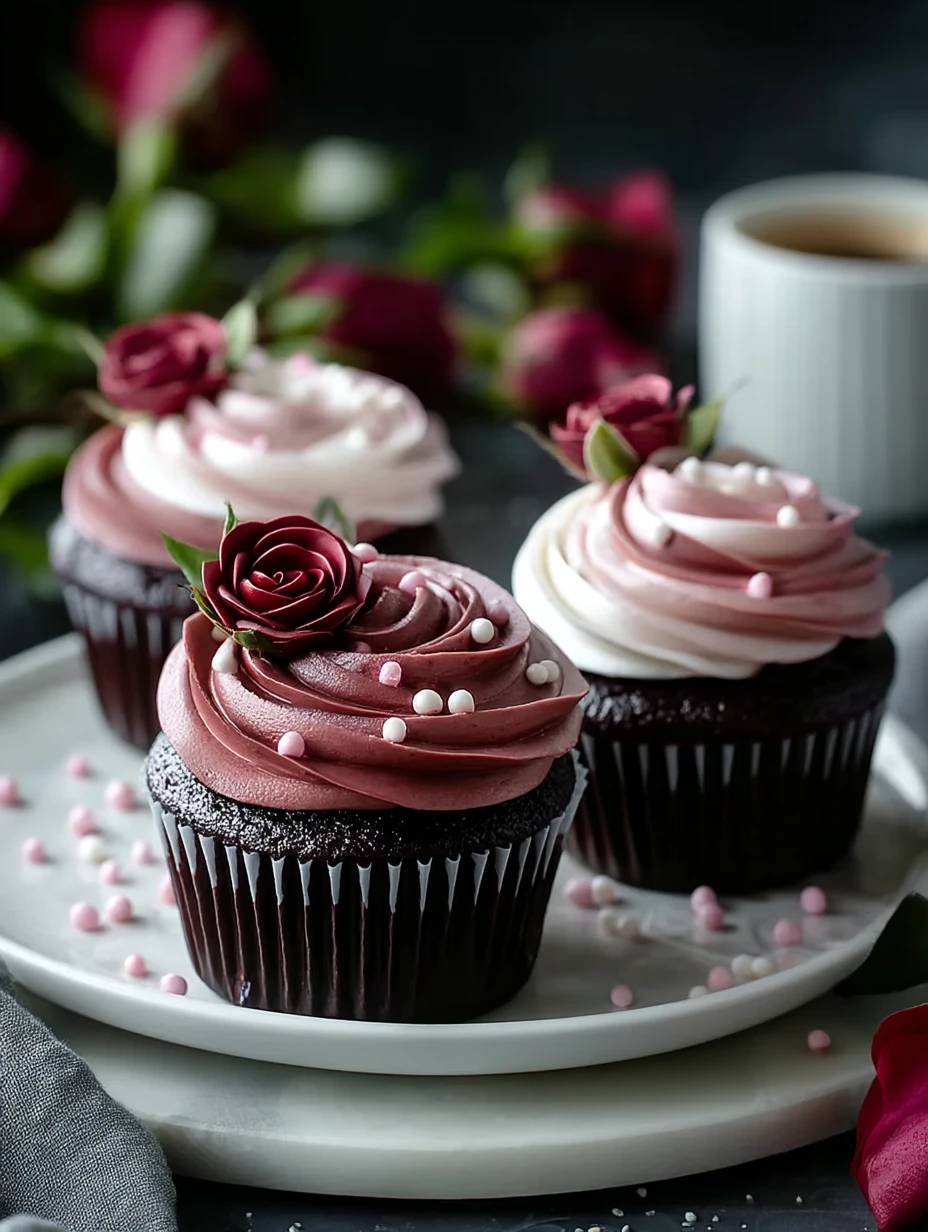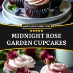 Keywords: midnight rose garden cupcakes, chocolate cupcakes, rose frosting cupcakes, elegant dessert, easy cupcake recipe, party desserts, birthday treats, romantic desserts, holiday baking, chocolate dessert idea