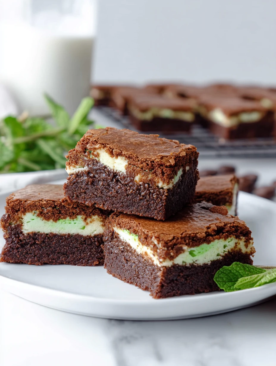 Keywords: mint brownies, fudgy brownies, chocolate mint dessert, brownie bars, easy dessert, holiday dessert, party dessert, chocolate dessert