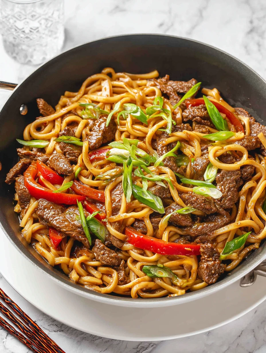 When you need a comforting dinner with bold flavor and minimal fuss, Mongolian Beef Noodles will never steer you wrong. This dish brings together tender strips of beef, glossy soy-based sauce, and springy noodles with sweet red bell peppers and green onions for color and crunch. It tastes like takeout but feels like home.