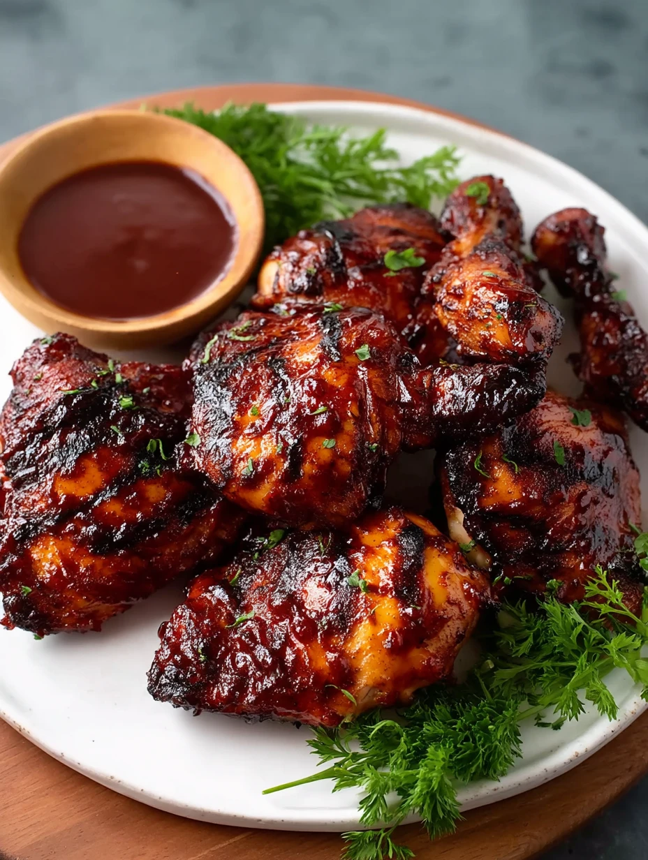 I can never resist a platter of sticky, caramelized BBQ chicken fresh off the grill. The charred edges, the glossy sauce, the way the meat pulls cleanly from the bone—it’s the kind of backyard food that makes everyone forget their phones and hover around the grill instead.