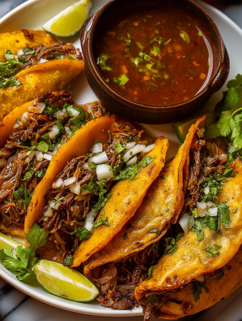 When you’re craving something rich, cheesy, crispy, and absolutely soaked in bold flavor, Birria Tacos are your answer. These beloved Mexican street-style tacos are filled with slow-cooked, chili-spiced beef tucked into a crispy pan-fried tortilla, all served with a side of the ultimate flavor booster: the rich, deeply savory consommé.