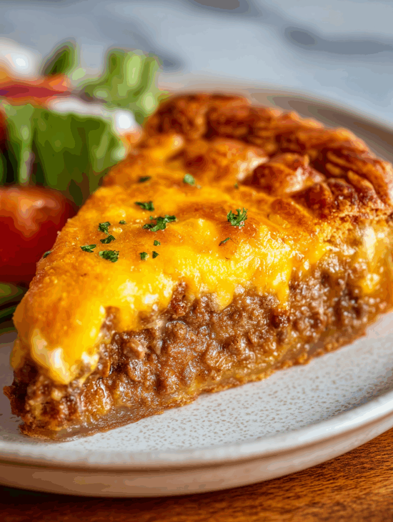 Savory, cheesy, and oh-so-comforting, this One-Pan Cheeseburger Pie Dinner brings all the flavors of a classic cheeseburger into a golden, flaky pie crust. It’s the perfect mash-up of nostalgic diner fare and homey comfort food, all packed into one pan for an easy dinner win. Imagine juicy seasoned beef, melty cheddar, and a buttery crust that holds it all together.