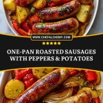 Need a no-fuss weeknight dinner that feels gourmet but takes minimal effort? This One-Pan Roasted Sausages with Peppers & Potatoes recipe delivers bold flavors, crispy textures, and total comfort. Sausages roast to juicy perfection alongside caramelized bell peppers, baby potatoes, onions, garlic, and fresh herbs—all on one tray. It’s a go-to for quick dinner ideas, easy meals, or even meal prep. Perfect for busy nights, lazy Sundays, or crowd-pleasing family dinners.
