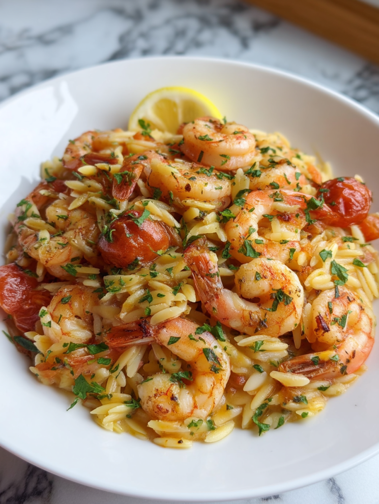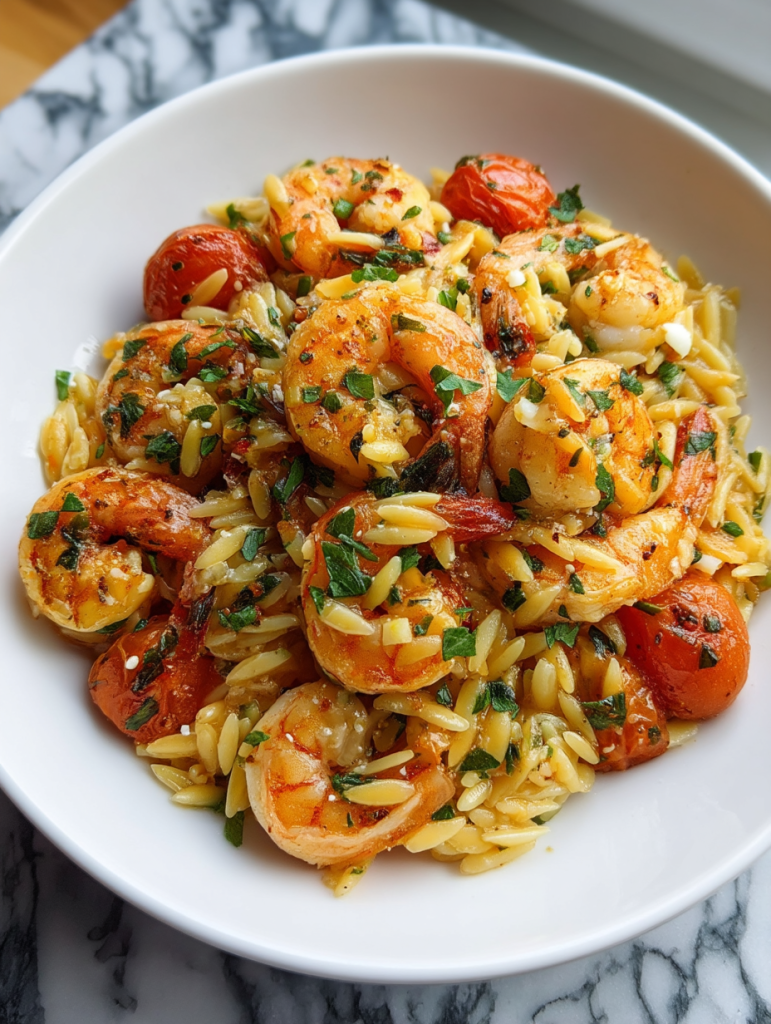 This dish is best enjoyed immediately while the orzo is creamy and the shrimp are juicy. However, leftovers can be stored in an airtight container in the fridge for up to 2 days. Reheat gently with a splash of broth or water to revive the sauce.
