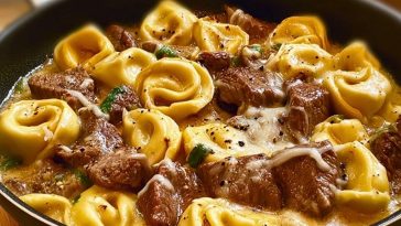 Cheesesteak Tortellini in Rich Provolone Sauce