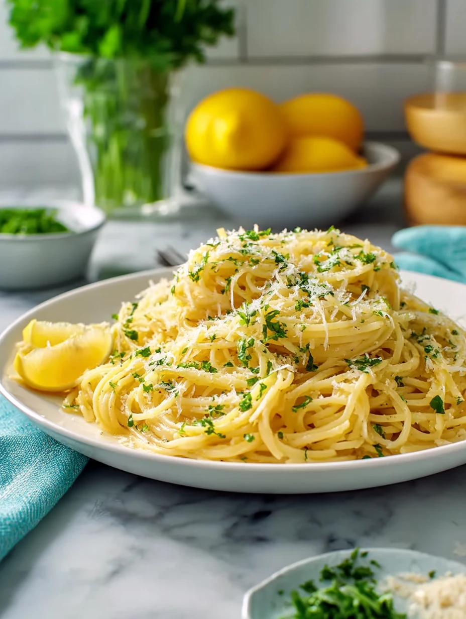 I like using spaghetti, linguine, or fettuccine because long noodles catch the glossy Parmesan lemon sauce beautifully. The pasta is the base that carries every bit of flavor.