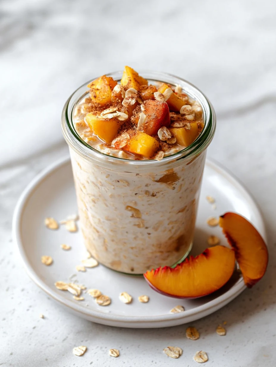 What I love most is how effortless it is. I can stir everything together in just a few minutes at night, pop the jar into the fridge, and wake up to a chilled, creamy breakfast that tastes like dessert in the best possible way. When I top it with fresh peaches and a dusting of cinnamon, it feels extra special without any extra work.