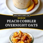 Peach Cobbler Overnight Oats is one of those breakfasts I make when I want something that feels cozy and a little indulgent, but still fits into a simple morning routine. It has the creamy texture of overnight oats, the juicy sweetness of peaches, and that warm cinnamon flavor that always reminds me of homemade cobbler.