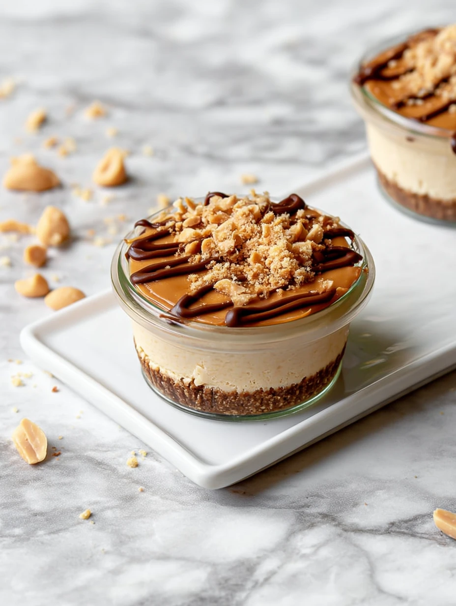 What really won me over is how easy they are to portion, chill, and serve. Each little cup has a buttery cookie crumb base, a smooth peanut butter filling, and that glossy drizzle on top that makes them look like they came straight from a bakery case. They are perfect for meal prep, an after-dinner treat, or a quick sweet bite when I want something chilled and creamy.