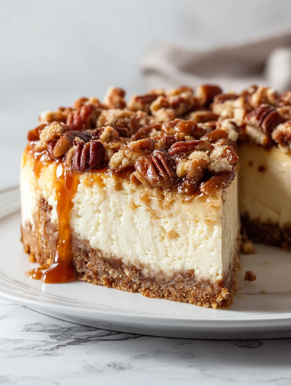 Graham cracker crust works best for this cheesecake. It provides a sturdy, slightly sweet base that complements the rich, creamy filling and holds up under the sticky pecan topping. If you’re feeling creative, try using crushed vanilla wafers or even gingersnaps for a spicy twist.