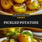 I love a side dish that surprises people, and these Pickled Potatoes do exactly that. They are tender, briny, bright, and full of bold flavor from vinegar, garlic, onion, dill, and a little heat. The potatoes soak up every bit of that punchy marinade, so each bite tastes savory, tangy, and deeply satisfying.