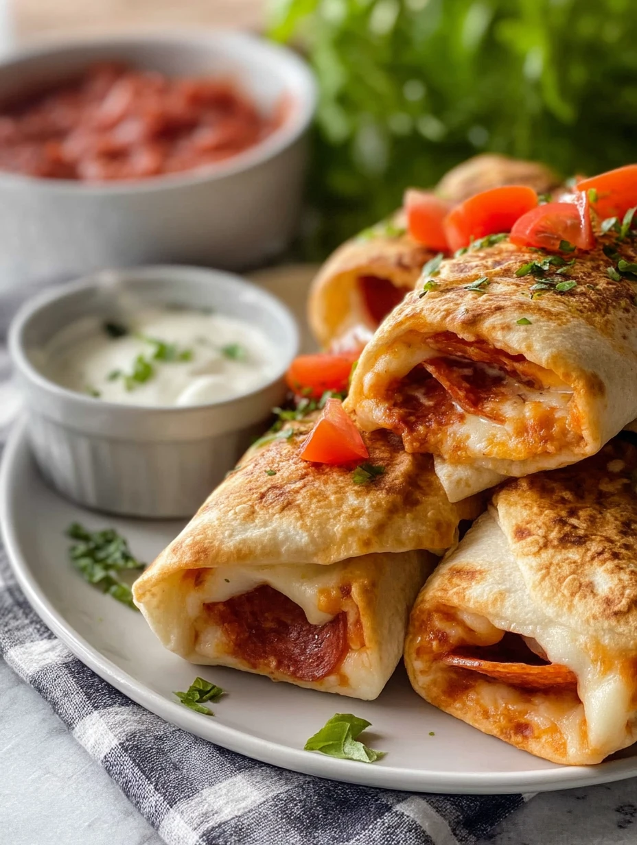 Think of these Pizza Burritos as everything you love about a cheesy slice of pepperoni pizza, rolled up into a golden, handheld wrap. The tortillas bake up crisp and blistered, the mozzarella turns melty and stretchy, and the pepperoni gets that perfect little curl of crispy edge. Dunk them in warm marinara and you’ve pretty much got game-night perfection.