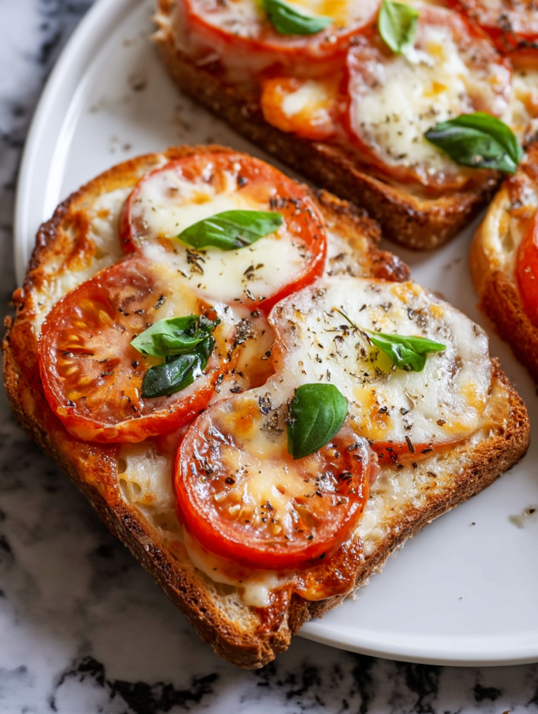 Imagine this: slices of thick sourdough bread toasted to perfection, layered with rich marinara sauce, juicy tomatoes, creamy mozzarella, and finished with a few fresh basil leaves. It’s an explosion of flavors and textures that hit all the right notes—cheesy, toasty, tangy, and just a hint of spice.