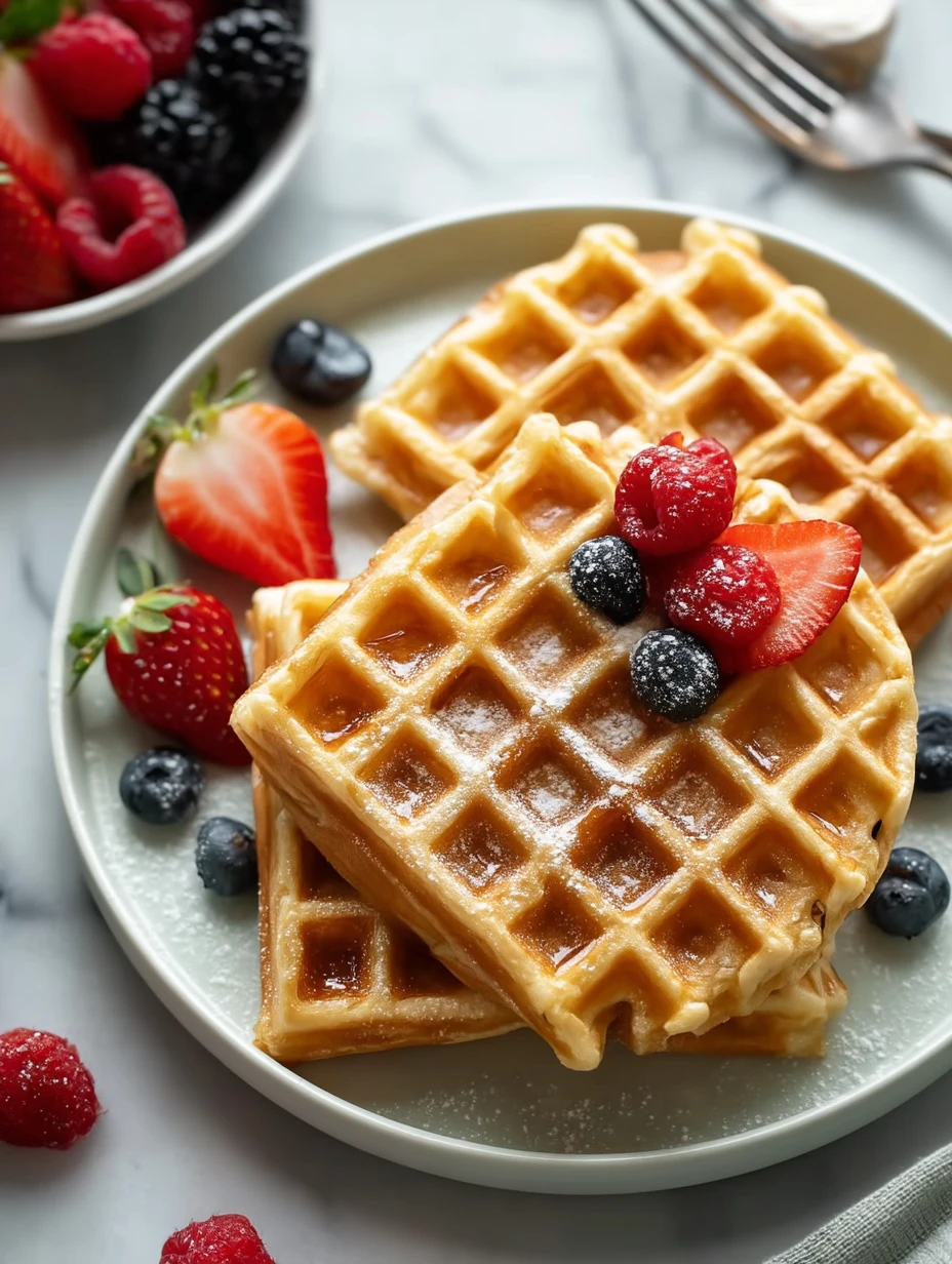 - Baking Powder: Helps the waffles puff up with golden, crisp edges.