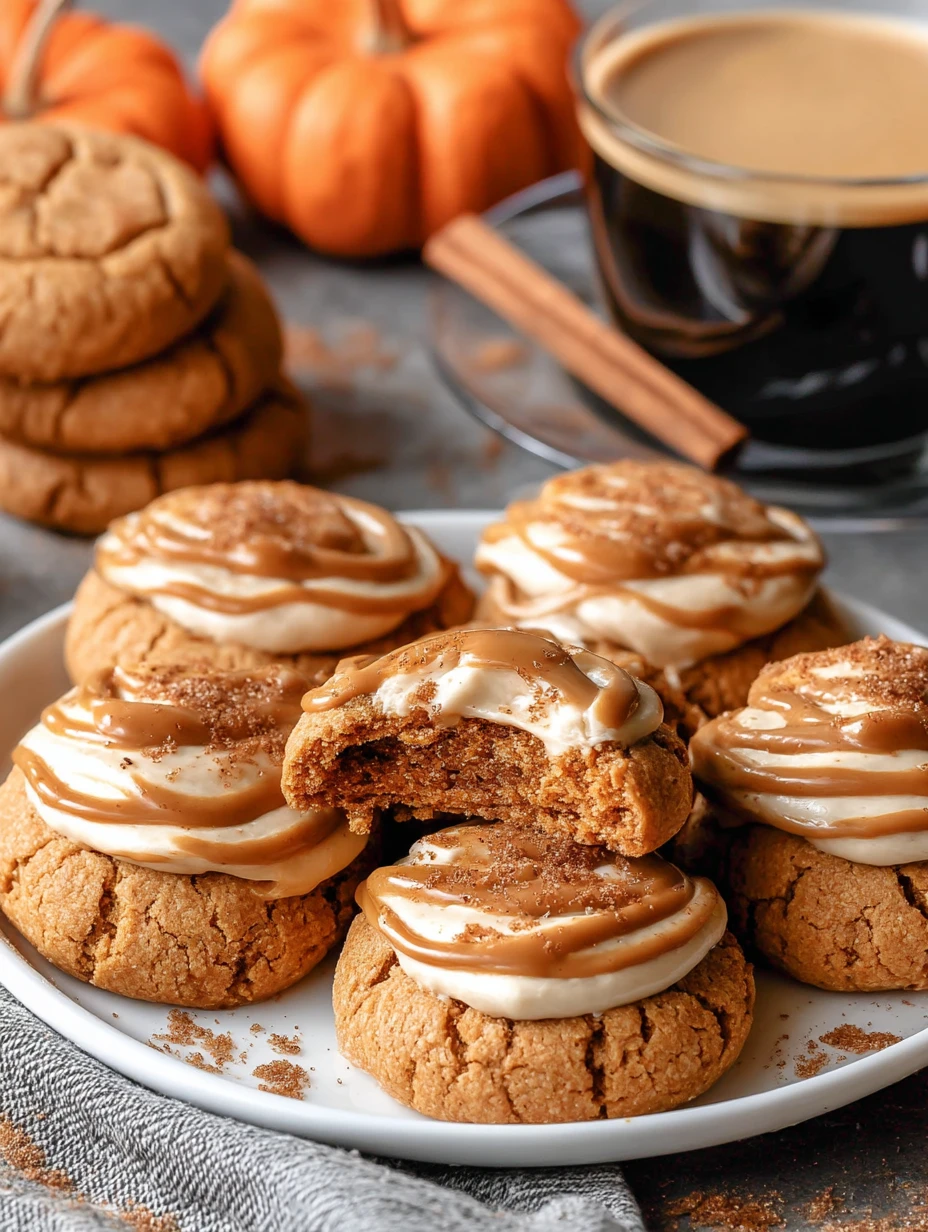 Perfect for autumn gatherings or an afternoon coffee break, these cookies offer layers of flavor: cinnamon, ginger, clove, and nutmeg all infused into a tender dough that stays delightfully chewy. A creamy frosting adds a rich coffeehouse vibe, making them both comforting and indulgent.