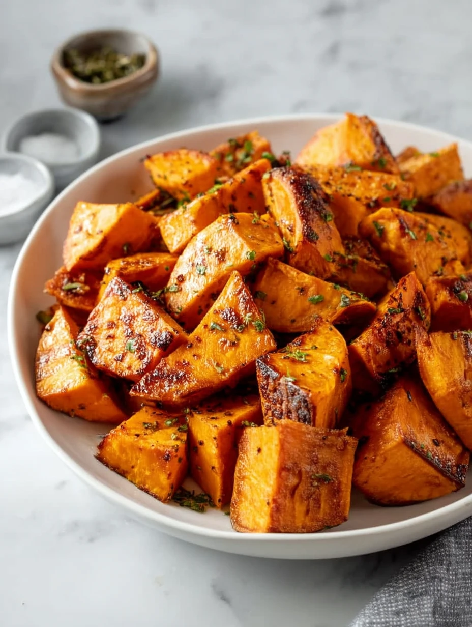 What makes them irresistible? It’s the balance of natural sweetness and a smoky-savory seasoning blend that roasts into each cube. The result? A crispy exterior with just the right touch of char, giving way to fluffy centers that are perfect every single time.