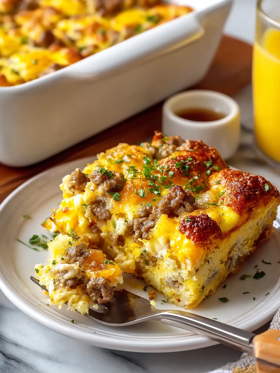 Get ready to elevate your mornings with this irresistible Sausage Breakfast Casserole—a golden, cheesy, and comforting bake that’s perfect for breakfast, brunch, or dinner. This easy recipe layers savory sausage, crispy hash browns, fluffy eggs, and melty cheddar cheese into one delicious dish. Whether you’re feeding a crowd or prepping meals ahead of time, it’s the ultimate crowd-pleaser. Great for holidays, lazy weekends, or when you need quick breakfast ideas or easy dinner recipes. Packed with protein and flavor, this casserole is hearty, simple to make, and oh-so-satisfying. If you’re on the hunt for healthy snacks or food ideas that hit the spot, this one won’t disappoint!