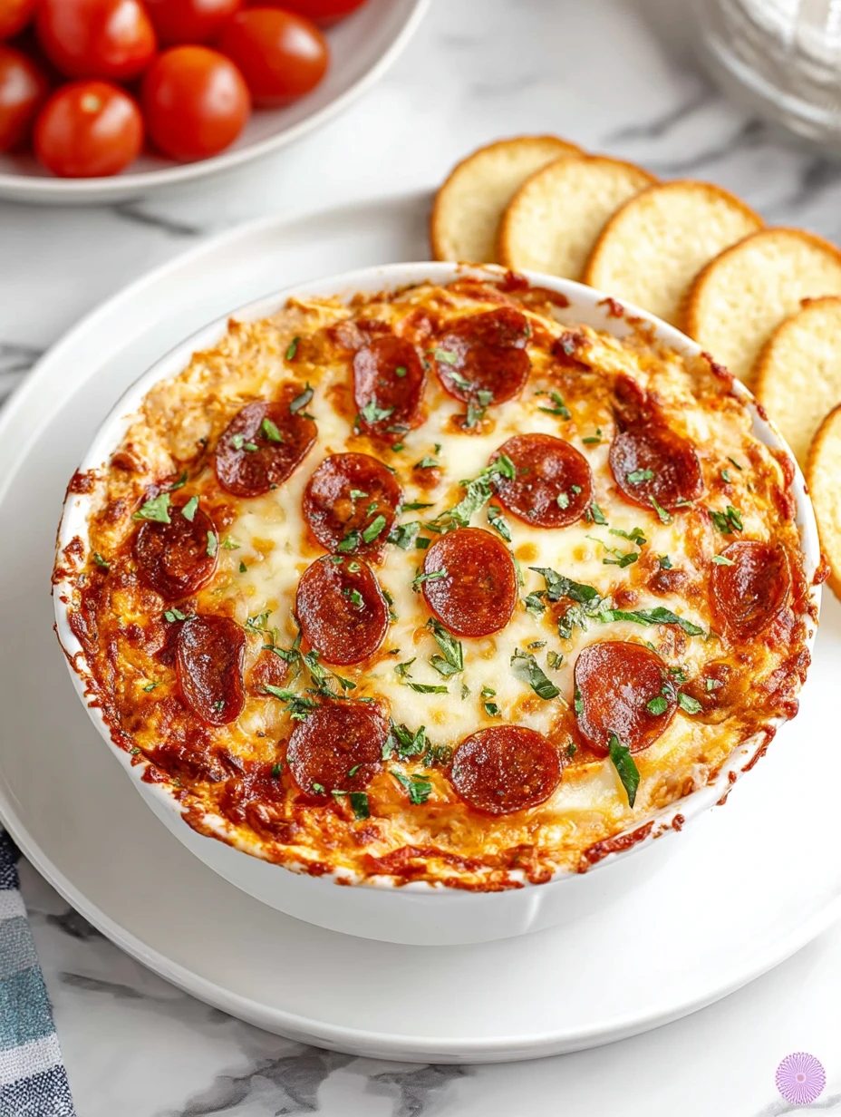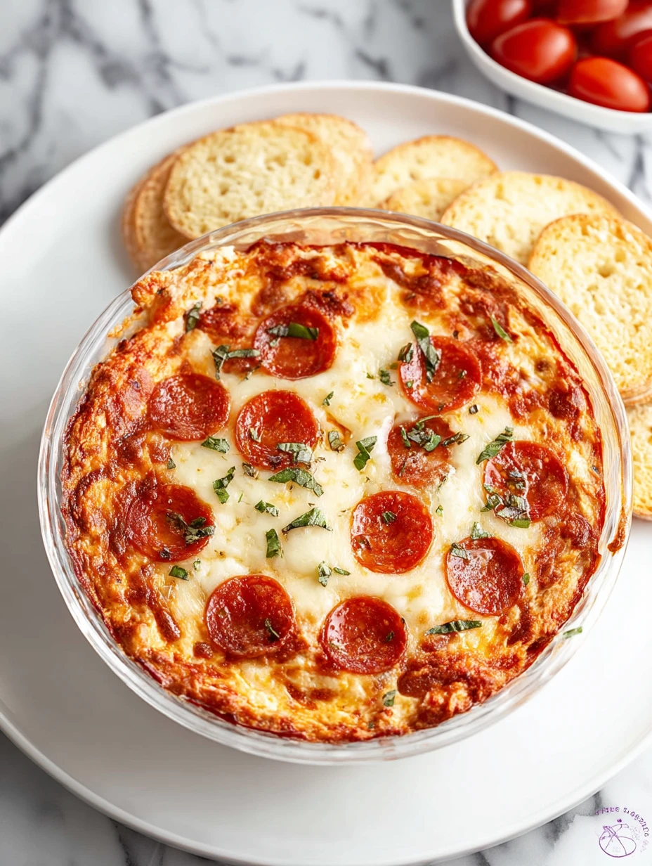 Whether it’s game day, movie night, or a casual get-together, this dip offers everything you love about pizza without the dough. Served warm and bubbling with flavor, it’s ideal with toasted baguette slices, crackers, or fresh veggies for a no-fuss snack that always delivers.