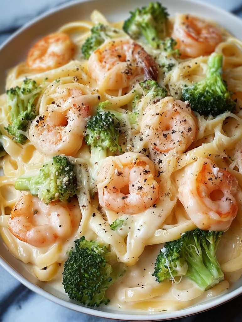 Whether you’re cooking to impress or simply feeding the family, this dish brings together the best of indulgence and nutrition. The shrimp deliver lean protein, the broccoli adds a nutritious green crunch, and the silky Alfredo sauce ties everything together beautifully. You’ll love how every bite bursts with flavor, warmth, and texture.