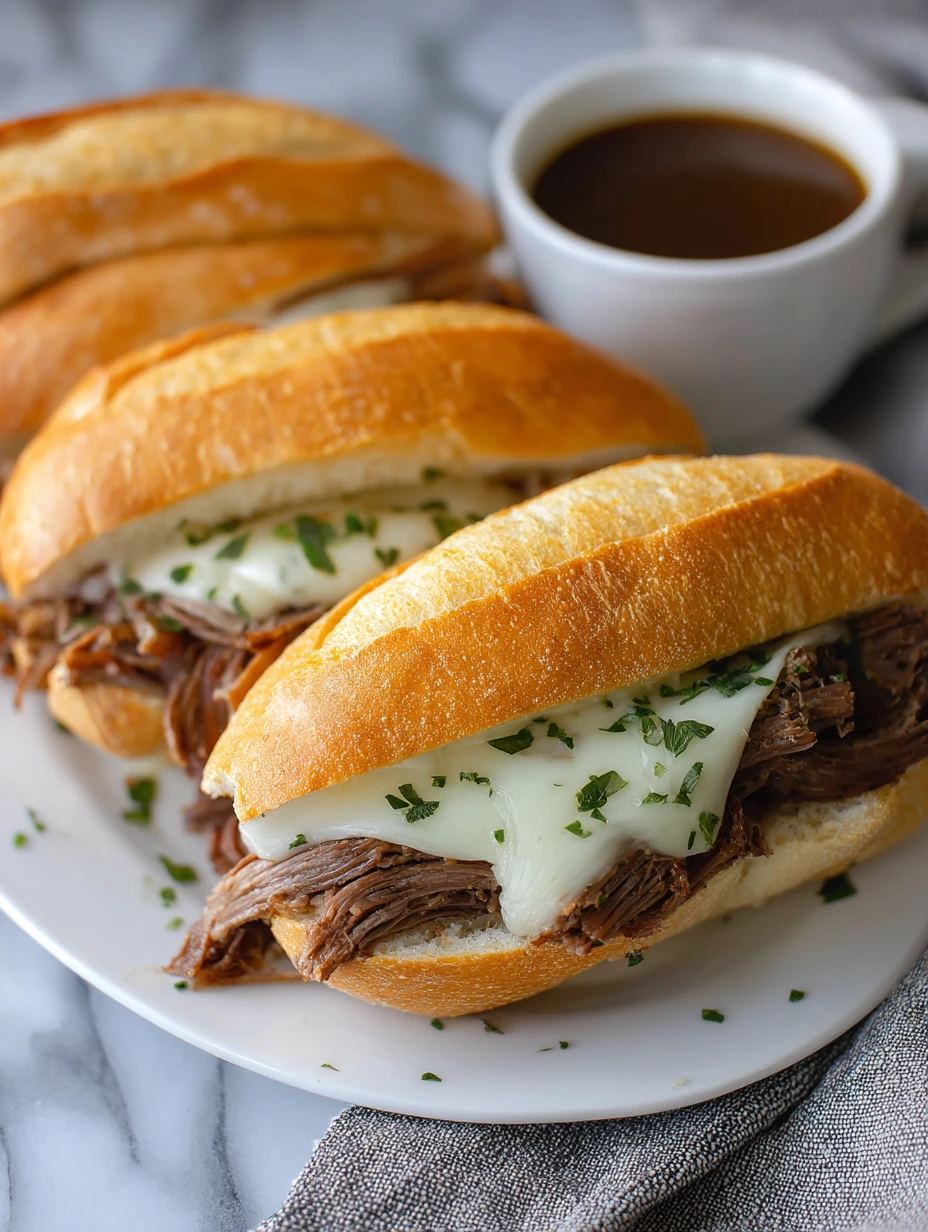 Chuck roast is the traditional go-to for French dip because it becomes wonderfully tender during slow cooking. It shreds easily and soaks up all the flavorful juices. You could also try rump roast or bottom round roast, but chuck roast delivers the juiciest, most flavorful result.