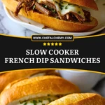 Craving a cozy, effortless dinner that hits all the right notes of savory, melty, and satisfying? These Slow Cooker French Dip Sandwiches are your answer. Juicy shredded beef slow-cooked to perfection, layered into crusty French rolls, and topped with gooey provolone—served with a rich au jus that elevates every bite. Ideal for weeknight dinners, game day spreads, or even as part of your collection of easy dinner ideas, this recipe is packed with comfort and flavor. Whether you’re browsing for food ideas for a crowd, simple slow cooker meals, or classic beef sandwich recipes, this one delivers every time.