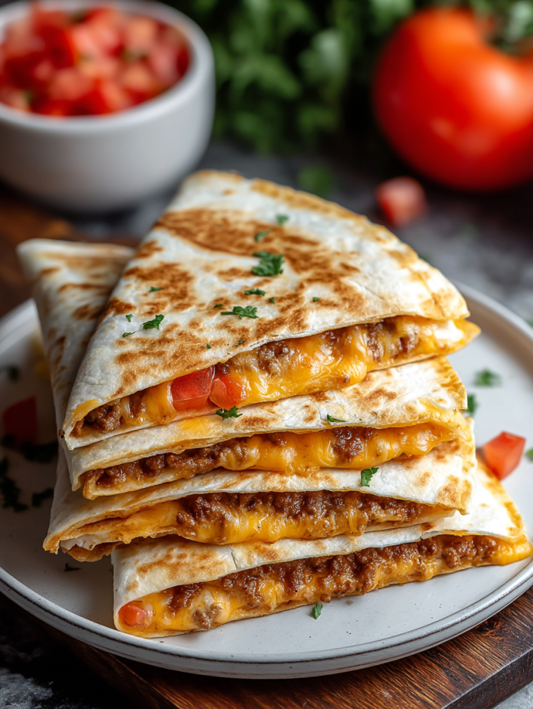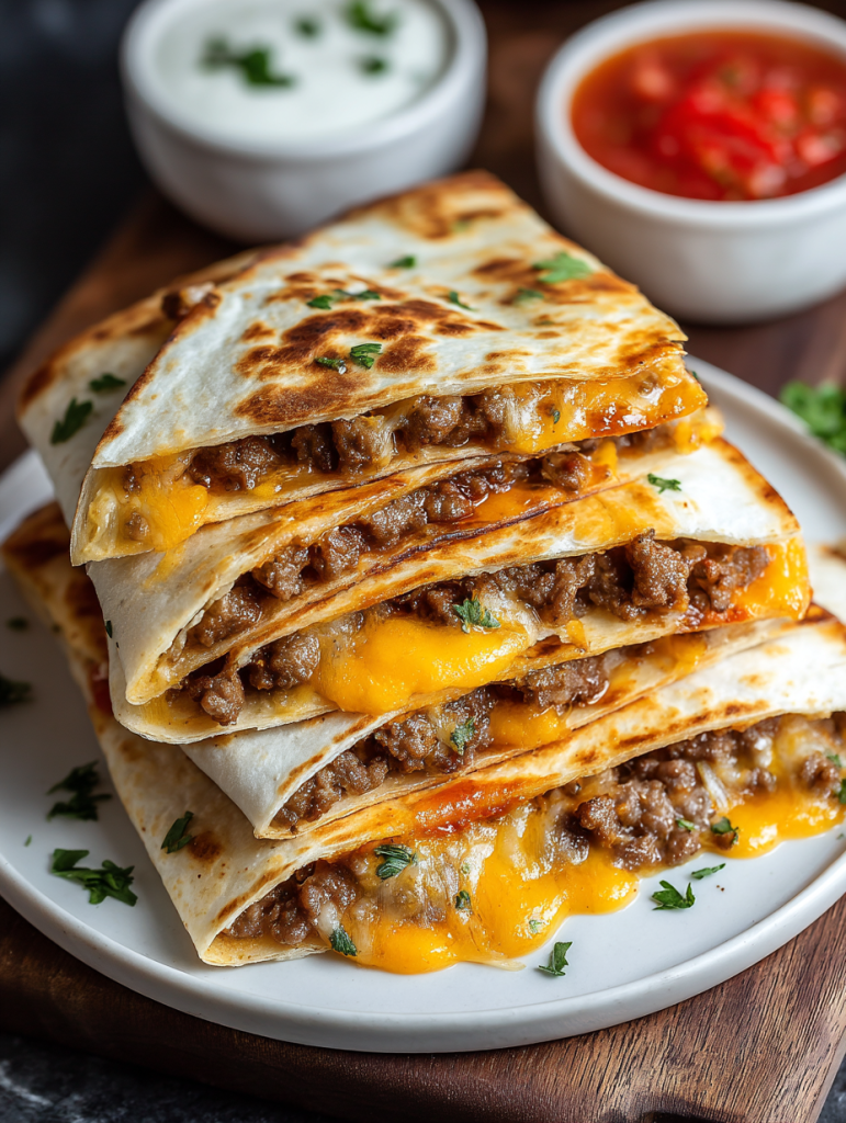 Whether you need a quick weeknight dinner, a gameday snack, or a satisfying midnight bite, these quesadillas hit all the right notes. They’re easy to whip up, endlessly customizable, and deliver big on flavor with minimal fuss. A crunchy crust, gooey center, and savory burger bliss in every bite.